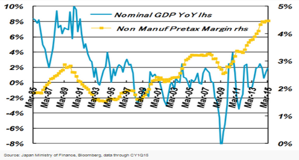 The yellow index describes that pretext margin that was attributed to the non-manufacturing companies. In this valuation, the description that is, therefore, attached to the performance of the companies in Japan is equally the one that is attached to the eventuality of a rise even with the nominal GDP rising (John, 2015).