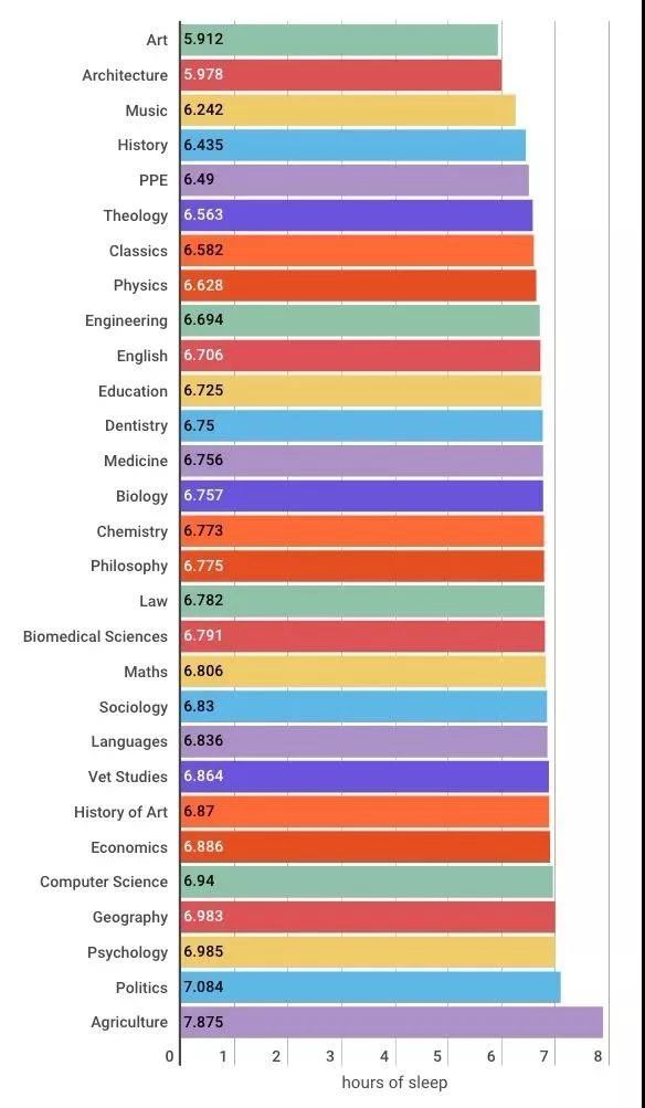 Tab網(wǎng)站之前做了一個英國大學各專業(yè)睡眠時間的調(diào)查,超過4000人參與了調(diào)查。