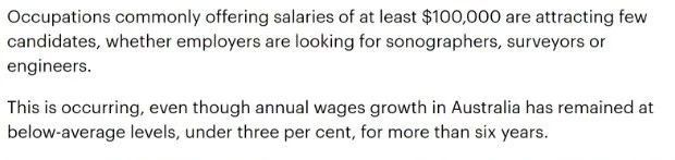 據(jù)了解,澳洲超過(guò)6年年薪增長(zhǎng)率低于3%,低于正常水平。