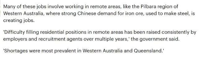 其中不少工作機(jī)會(huì)要到偏遠(yuǎn)地區(qū),比如西澳的Pilbara等等一些不少與中國(guó)合作的工程項(xiàng)目。