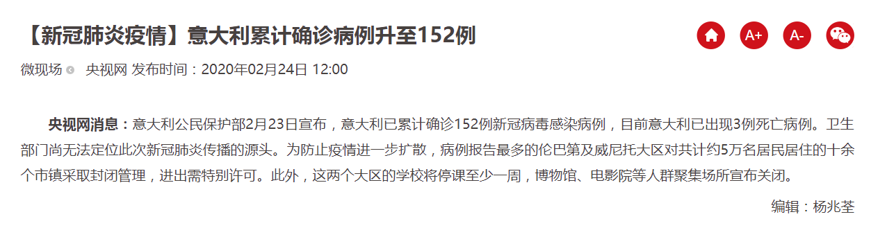 如今疫情突發(fā)嚴(yán)峻的情況下,意大利也已宣布升級(jí)防控措施。