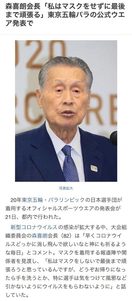 就在新冠肺炎在日本鬧的滿城恐慌的時(shí)候,日本前首相、東京奧組委會(huì)長(zhǎng)森喜朗,在出席活動(dòng)時(shí)表示: