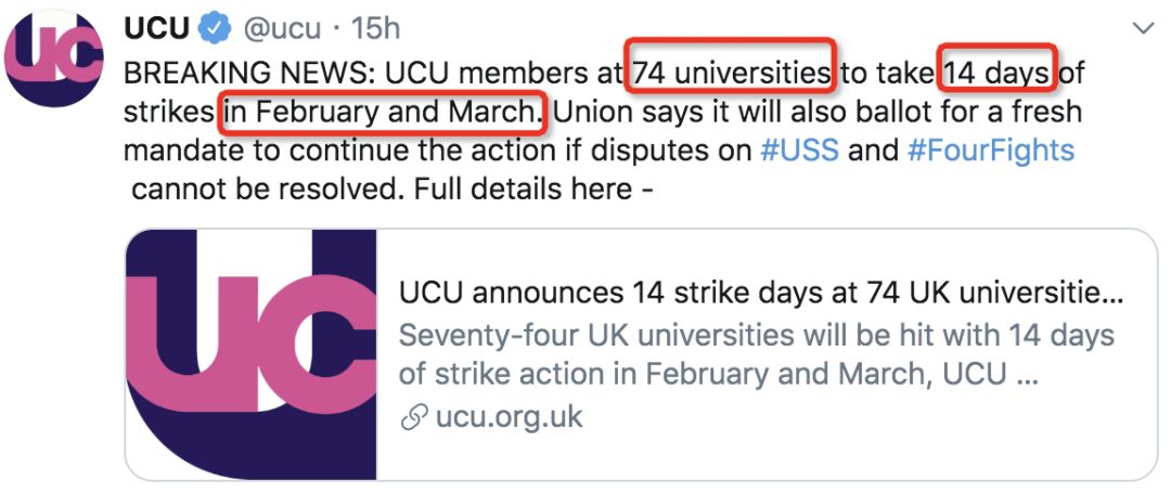 但是,去年11月的那次罷工并沒有實(shí)際解決他們的需求,英國大學(xué)雇主方還是不肯接受UCU的提議。所以他們決定再次罷工,然后就出現(xiàn)了這次“史上最強(qiáng)的罷工行動(dòng)”...