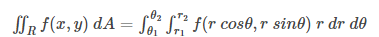 在這種情況下,首先我們要將f(r,θ)關(guān)于θ在θ = θ1到θ = θ2的限制下積分,將r視為常數(shù),然后將得到的表達式關(guān)于r積分,這時θ的函數(shù)將是常數(shù)。