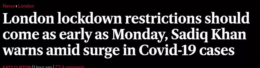 這一輪限制措施,包括宵禁(晚上10點以后餐飲業(yè)場所必須打樣)等。如果不加以干預(yù),倫敦的疫情會在2-3天之內(nèi)變得和英格蘭北部一樣嚴重。