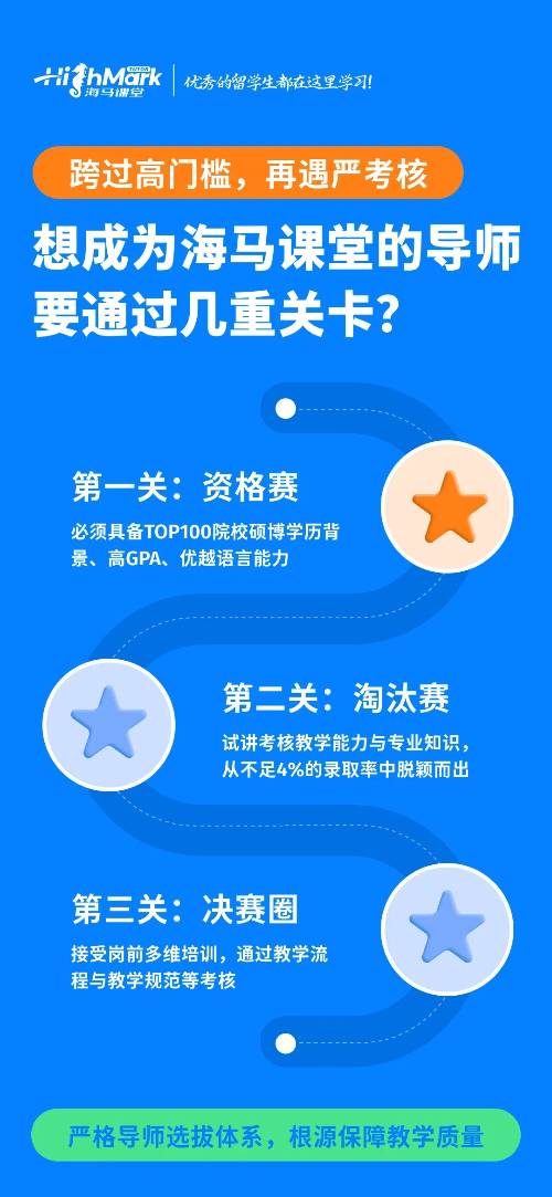 海馬中行業(yè)首推雙師模式,為留學(xué)生學(xué)業(yè)保駕護航。陪伴導(dǎo)師具有留學(xué)背景且教學(xué)經(jīng)驗豐富,懂學(xué)生痛點;教學(xué)出身的導(dǎo)師能提供專業(yè)學(xué)習(xí)規(guī)劃,精準避坑提升成績。該模式還為學(xué)生明確短期學(xué)期目標和長期畢業(yè)求職規(guī)劃,陪伴導(dǎo)師在線守護,讓留學(xué)之路清晰不迷茫。導(dǎo)師給予全面指導(dǎo),覆蓋學(xué)習(xí)、升學(xué)和就業(yè),毫無保留分享經(jīng)驗,助力學(xué)生全面發(fā)展。