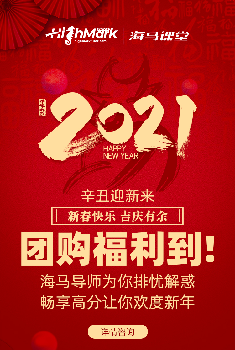 新春快樂,吉慶有余!海馬課堂特此推出團購福利!暢享高分,歡度新年~讓海馬導師為你排憂解難!詳情請咨詢學習規(guī)劃師~