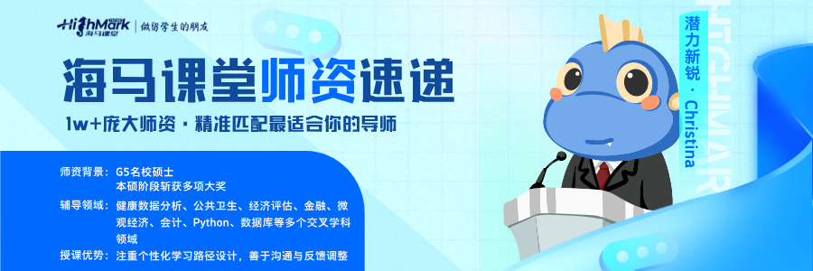 在留學學習道路上,不同學科挑戰(zhàn)不斷。為了更好地滿足同學們的個性化輔導需求,海馬課堂每周為你推薦潛力新銳導師與資深實力導師,全面覆蓋海外高校冷熱門專業(yè),精準適配不同基礎、不同目標的同學,幫助大家快速進階,提高成績!