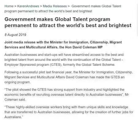 政府官宣這項(xiàng)吸引外國(guó)高技術(shù)人才來(lái)澳工作的專項(xiàng)簽證GTES在過(guò)去一個(gè)財(cái)年里試行成功,正式進(jìn)入澳洲的永久移民項(xiàng)目行列。