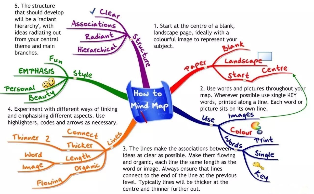 這種筆記法只需要學(xué)習(xí)者寫下一個(gè)主話題,然后在主話題下迅速記錄知識(shí)要點(diǎn)即可。適用于覆蓋大量信息的快節(jié)奏課程。