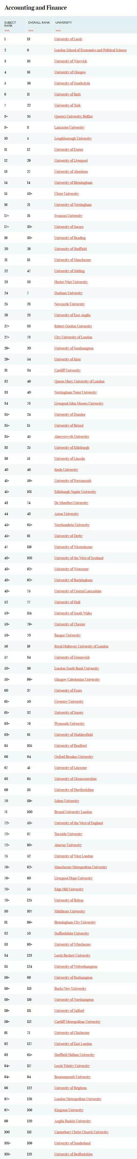 下面給同學(xué)們貼一下“會計(jì)與金融專業(yè)2020年TIMES英國大學(xué)排名”。速來圍觀吧!